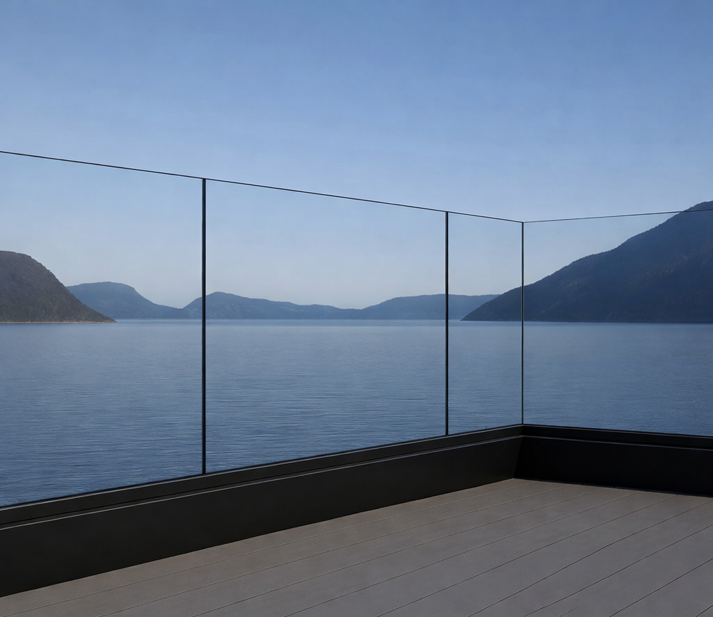 Salg, levering og profesjonell montering av glassrekkverk til terrasse, balkong og trapper.